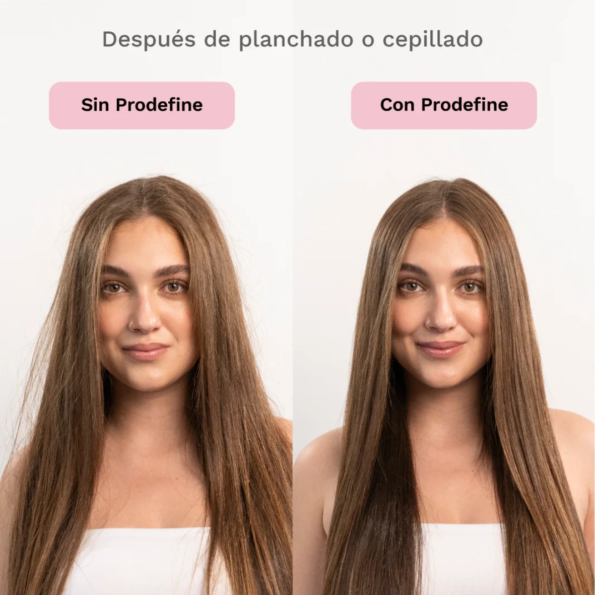 Pro-Define es un tratamiento de modelado capilar con efecto alisante, ideal para controlar el frizz, reducir el esponjamiento y proteger el cabello de la humedad. Su fórmula termoactivada combina biopolímeros de origen vegetal, 11 aminoácidos, ácido láctico, ácido glicólico y aceite de coco para lograr un cabello más liso, manejable y visiblemente saludable desde el primer uso.