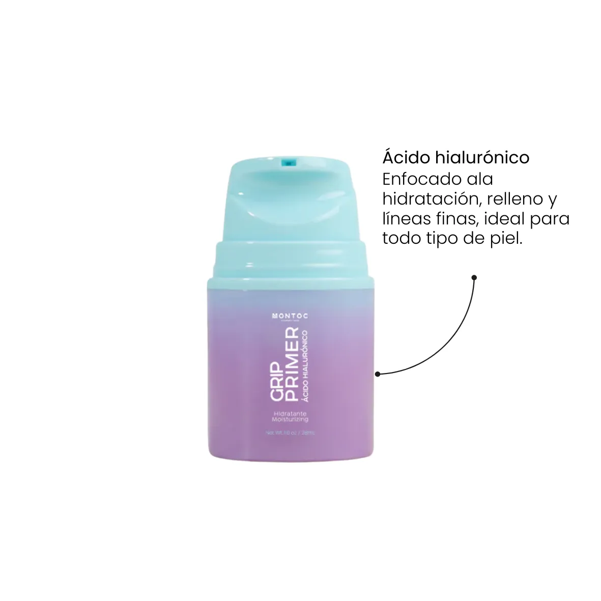 Primer hidratante pensado para preparar la piel antes del maquillaje, ideal para piel seca, mixta, grasa e incluso sensible, ya que no contiene siliconas y su fórmula ligera se absorbe sin dejar sensación pesada ni obstruir poros.Los ocho tipos de ácido hialurónico trabajan reteniendo agua en diferentes capas de la piel, lo que ayuda a rellenar, suavizar y mantener una hidratación prolongada.
